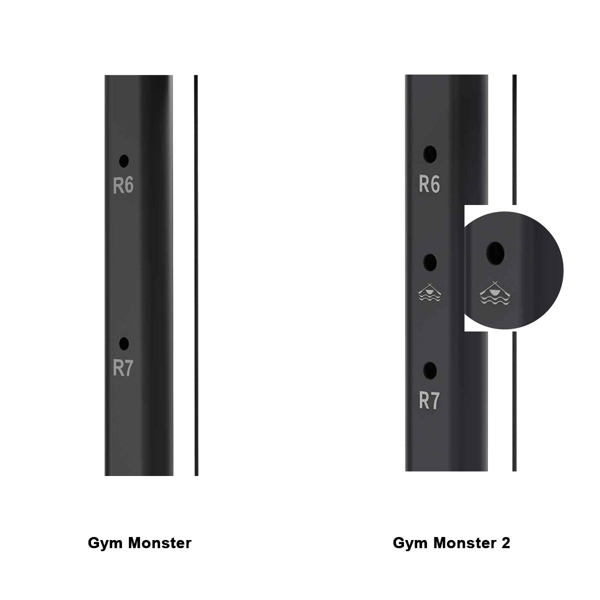 A new rowing-specific hole has been added between L6 and L7 on Gym Monster 2, providing users with intermediate gear options for smoother rowing workouts.