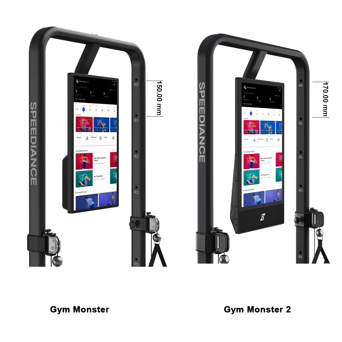 Sowohl das Gym Monster als auch das Gym Monster 2 unterstützen einen Gewichtsbereich von 3,5 kg bis 100 kg und bieten dieselben Funktionen wie Workouts, Trainingsmodi, Bewegungen und das Datencenter. Das Gym Monster 2 bringt jedoch wesentliche Verbesserungen.