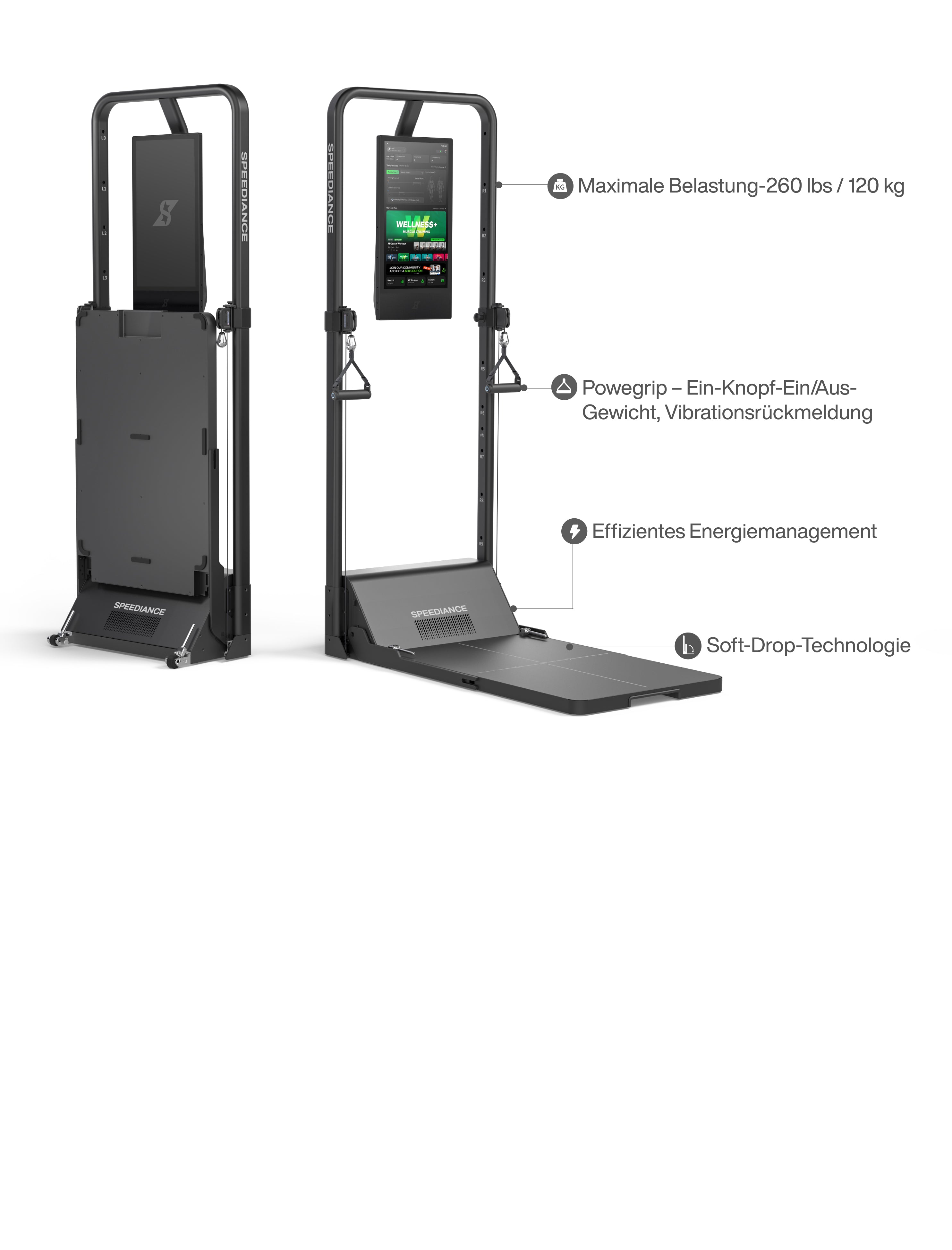 Allenamento preciso e silenzioso con peso digitale - agevole fino a 120 kg.
