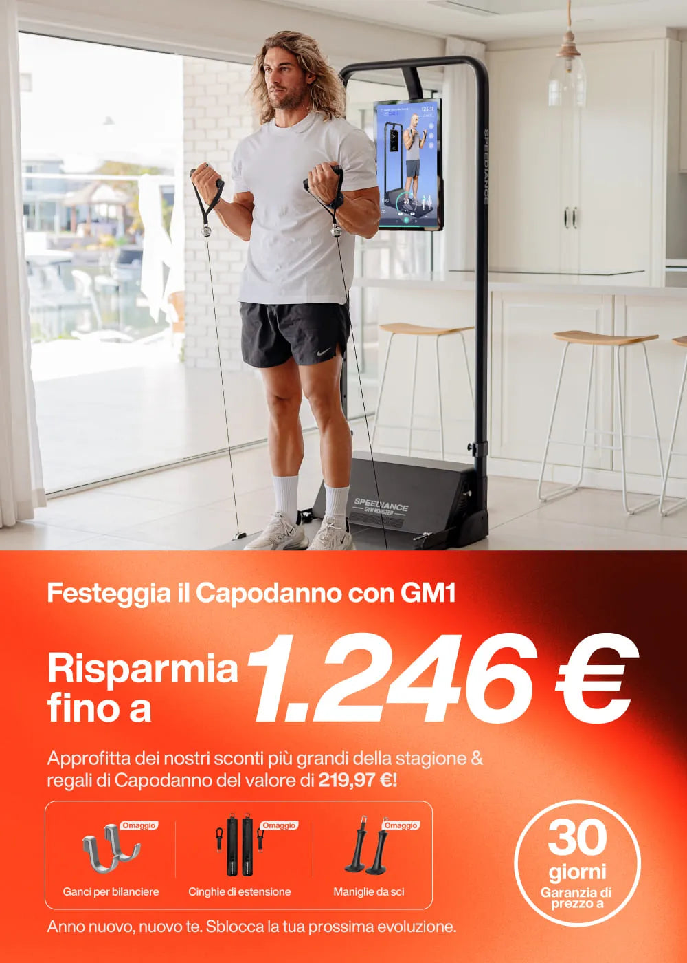 La soluzione completa per il fitness domestico, con una resistenza fino a 100 kg direttamente nelle tue mani. Include istruzioni di allenamento visualizzate, dati avanzati sulle prestazioni e modalità di allenamento versatili.