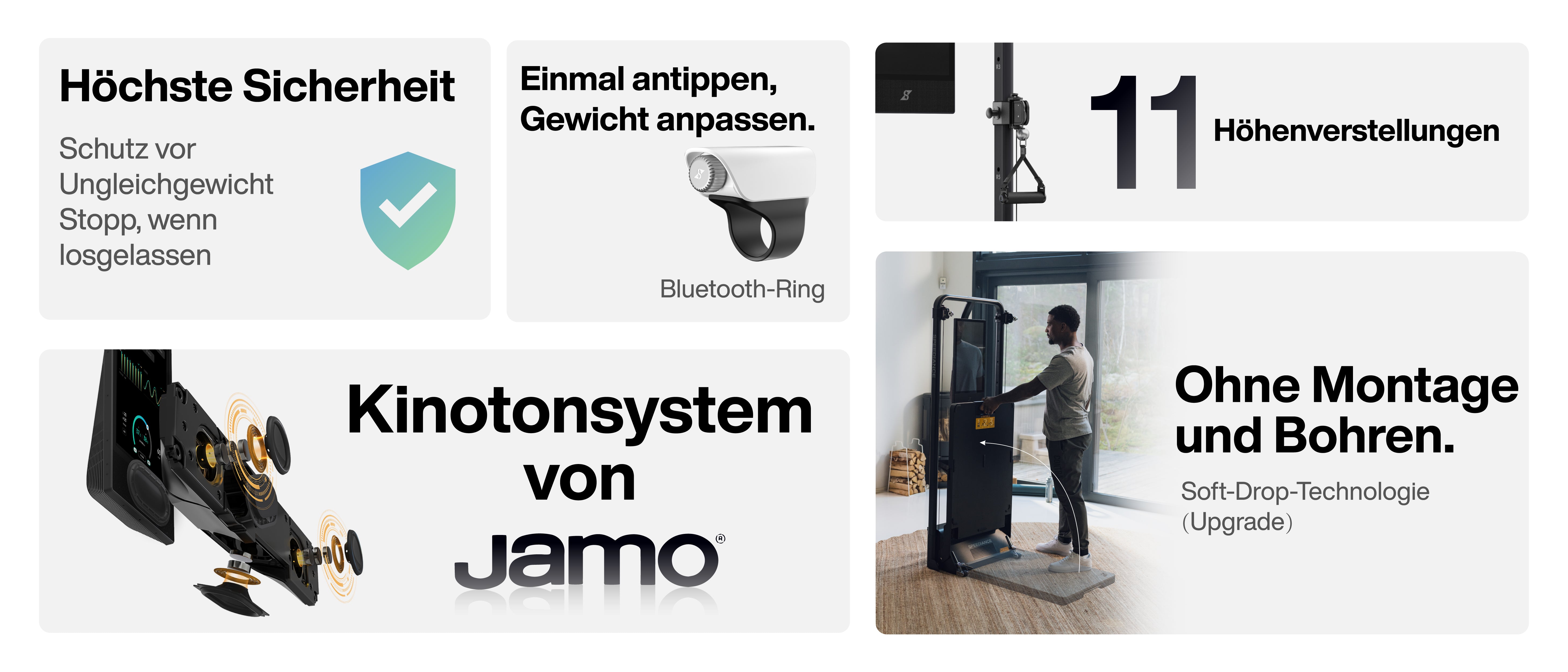 Das All-in-One-System verwandelt jeden Raum in ein voll ausgestattetes Fitnessstudio.