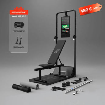 Robustes All-in-One-Design: Starte dein Workout direkt nach dem Auspacken – ganz ohne Montage, Bohren oder Wandbefestigung.